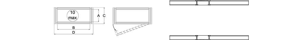 | MODEL | İç Yükseklik (mm) | İç Genişlik (mm) | Dış Yükseklik (mm) | Dış Genişlik (mm) | Kıvrılma Yarıçapı | Ağırlık Kg/Mtt |