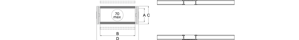| MODEL | İç Yükseklik (mm) | İç Genişlik (mm) | Dış Yükseklik (mm) | Dış Genişlik (mm) | Kıvrılma Yarıçapı | Ağırlık Kg/Mtt |