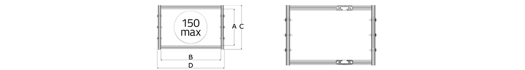 | MODEL | İç Yükseklik (mm) | İç Genişlik (mm) | Dış Yükseklik (mm) | Dış Genişlik (mm) | Kıvrılma Yarıçapı | Ağırlık Kg/Mtt |
