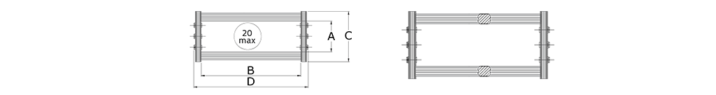 | MODEL | İç Yükseklik (mm) | İç Genişlik (mm) | Dış Yükseklik (mm) | Dış Genişlik (mm) | Kıvrılma Yarıçapı | Ağırlık Kg/Mtt |