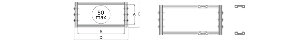 | MODEL | İç Yükseklik (mm) | İç Genişlik (mm) | Dış Yükseklik (mm) | Dış Genişlik (mm) | Kıvrılma Yarıçapı | Ağırlık Kg/Mtt |