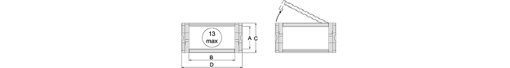 | MODEL | İç Yükseklik (mm) | İç Genişlik (mm) | Dış Yükseklik (mm) | Dış Genişlik (mm) | Kıvrılma Yarıçapı | Ağırlık Kg/Mtt |