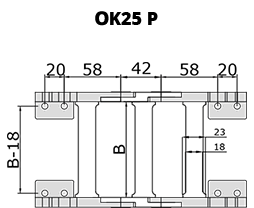 | OK25 A 100 R ... | 25 | 100 | 42 | 122 | 40, 75, 100, 125 | 1,332 |